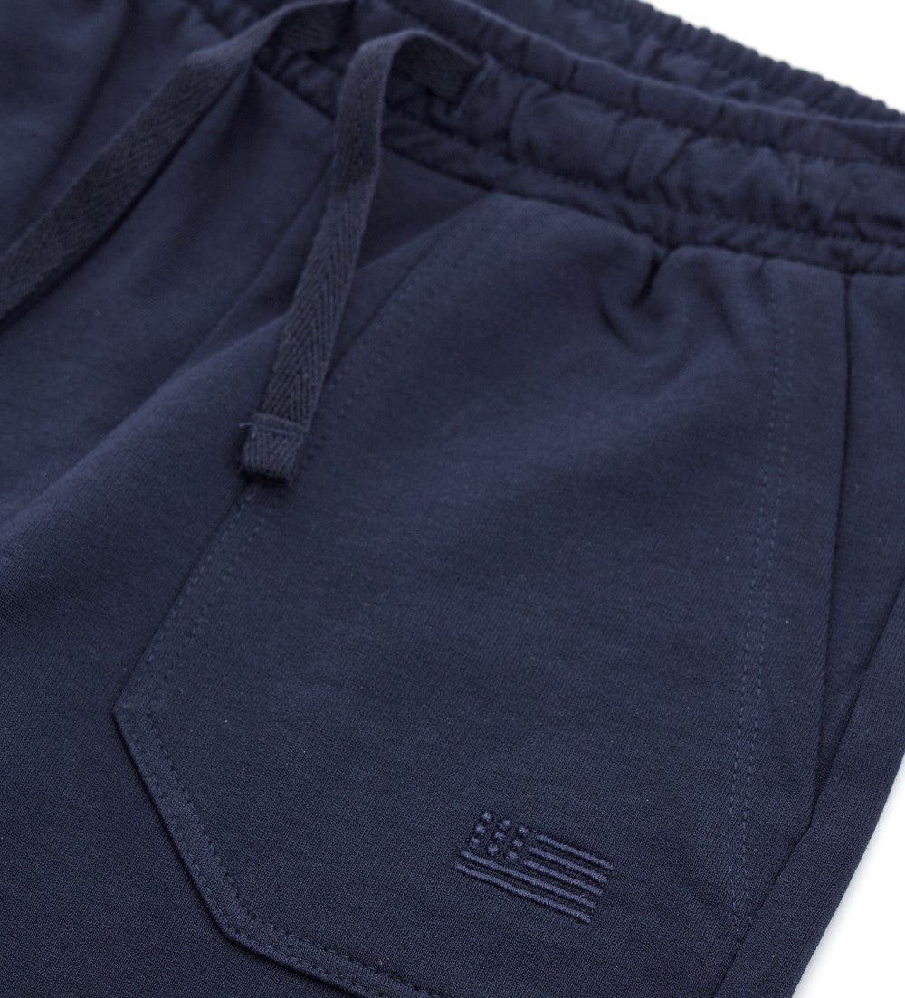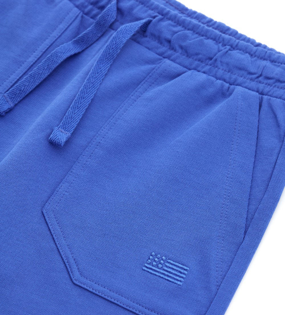 Cotton Bermuda shorts with elastic waist, adjustable drawstring, slant and patch pockets on the back.