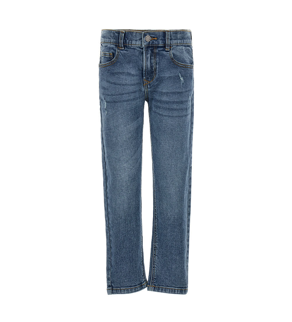 5-pocket denim pants in stretch cotton with zip and button at the waist.