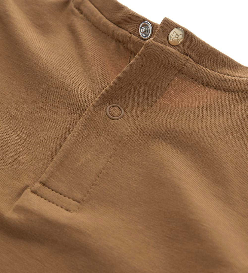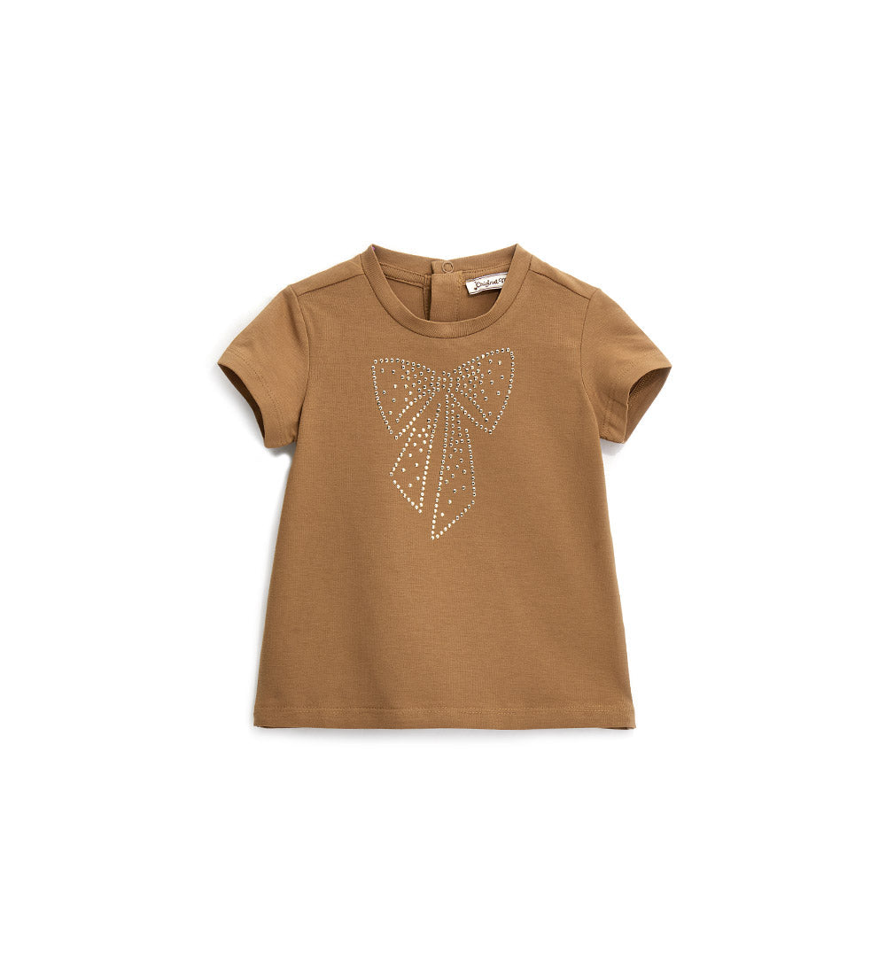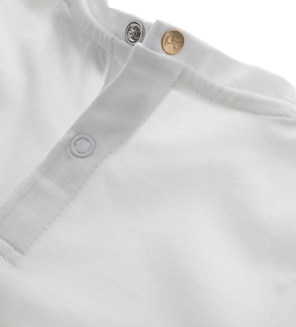Long-sleeved crewneck t-shirt in stretch cotton with rear snap button opening, print with applications, glitter details and gold studs.