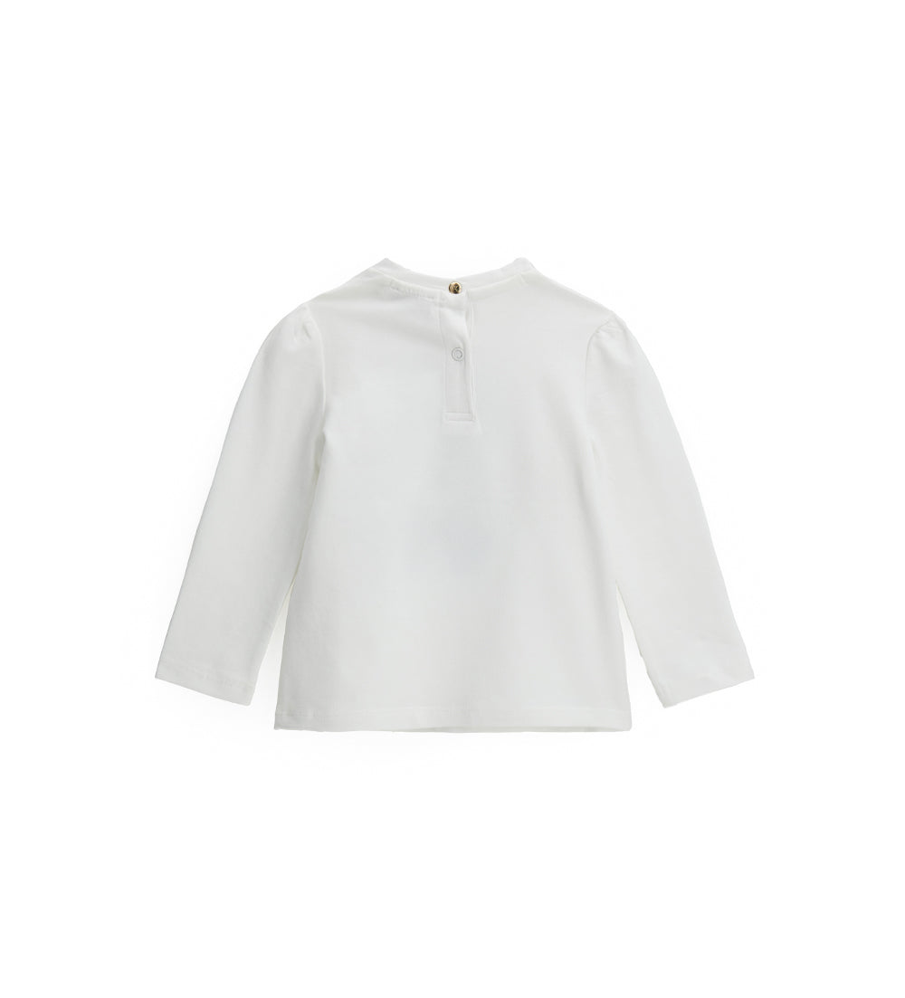 Long-sleeved crewneck t-shirt in stretch cotton with snap button opening at the back.