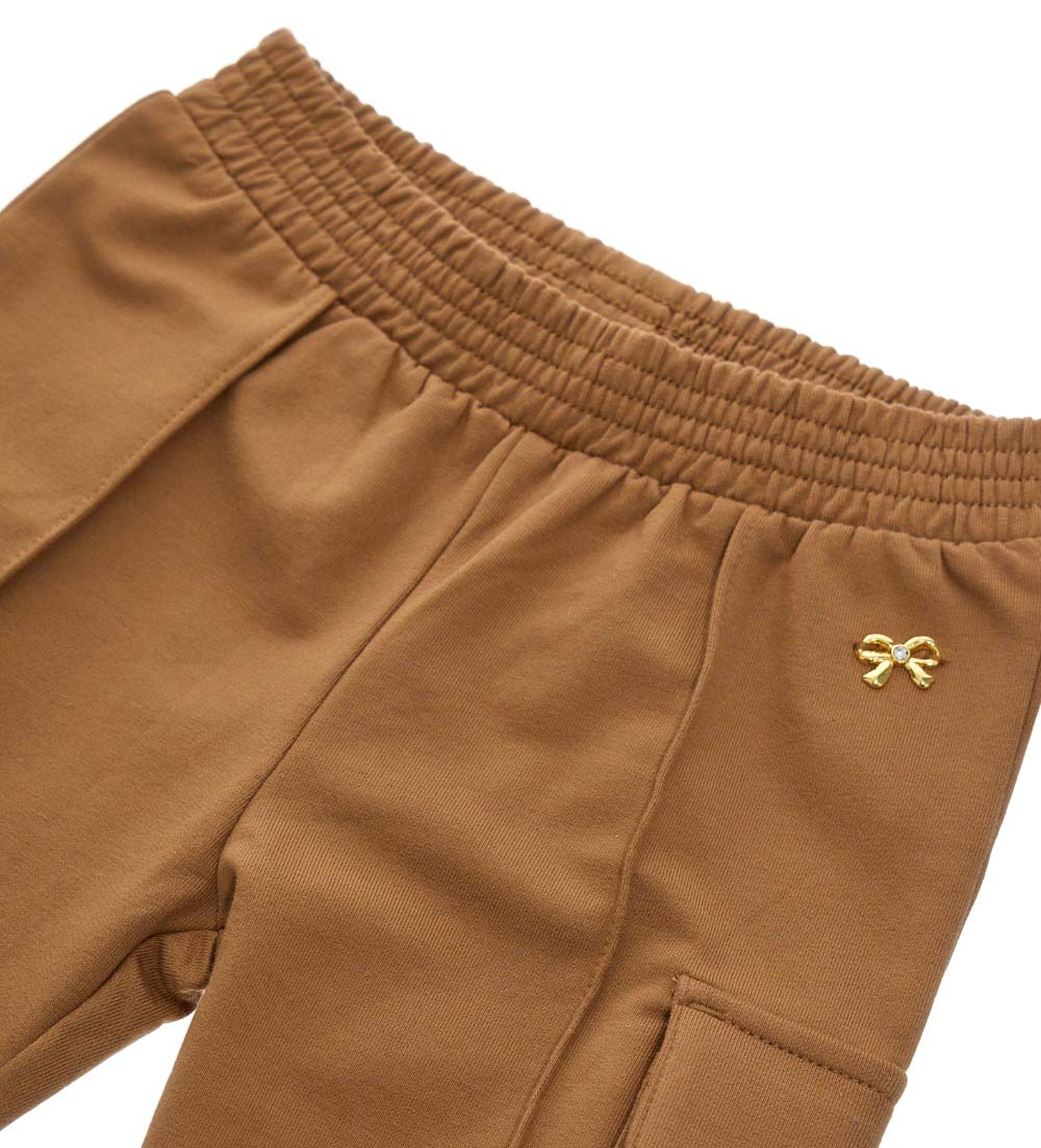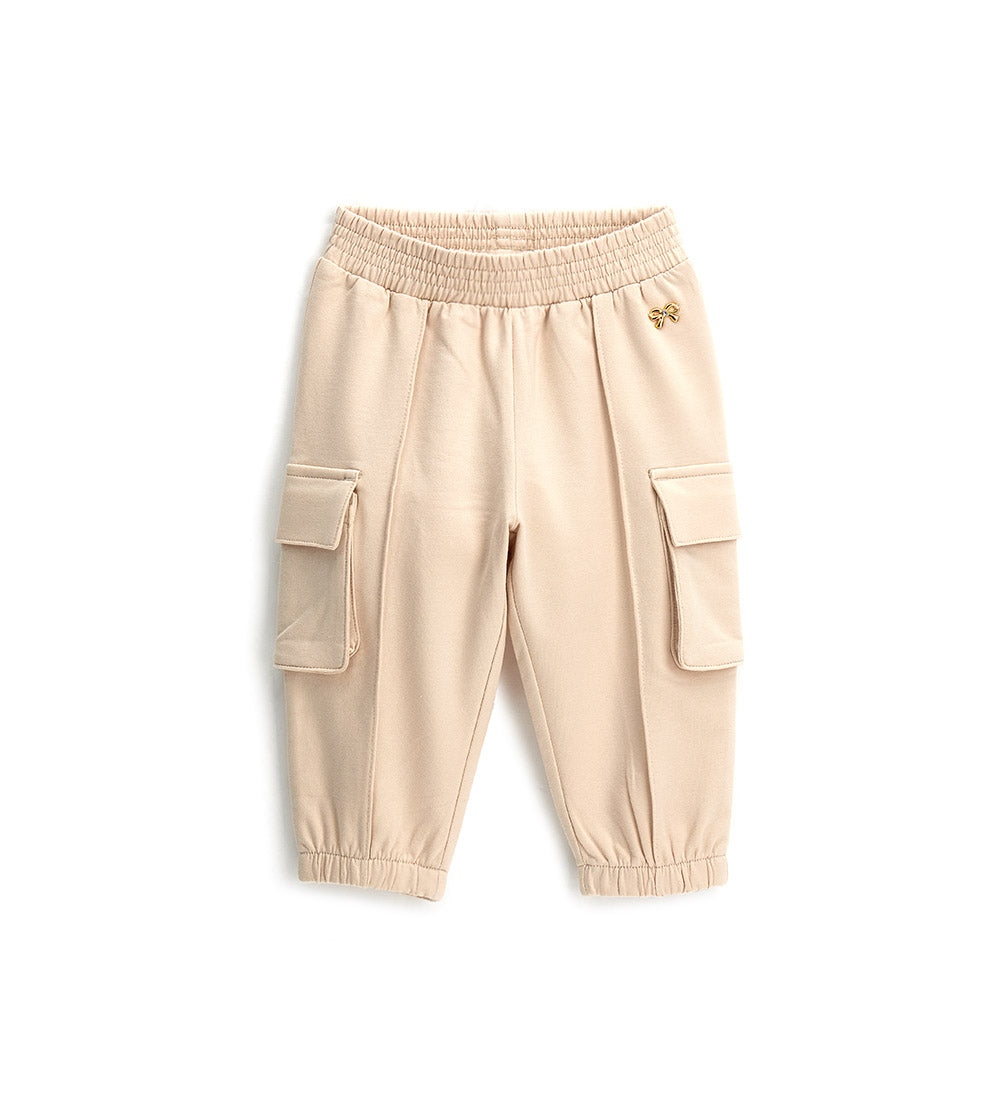 Stretch cotton fleeced pants with elasticated waist and patch pockets on the sides.