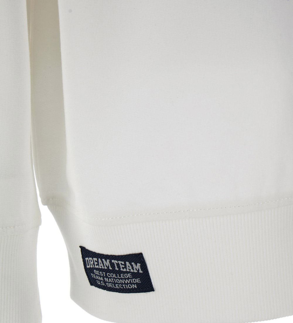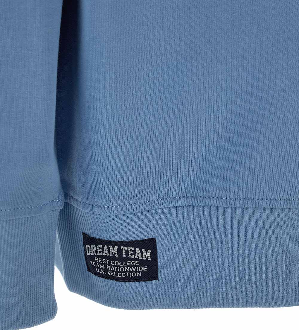 Long-sleeved cotton crewneck sweatshirt with collar, ribbed finishes, print and front embroidered label.