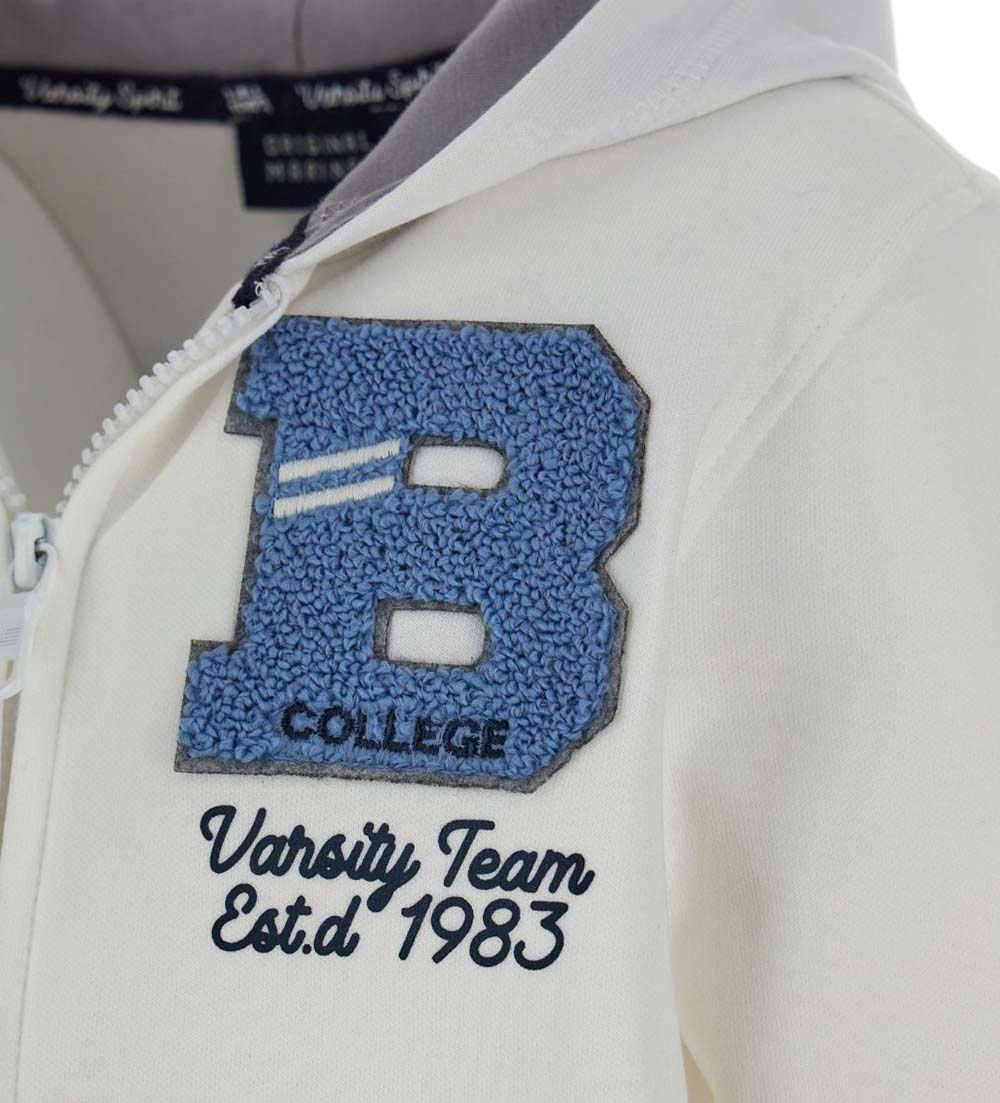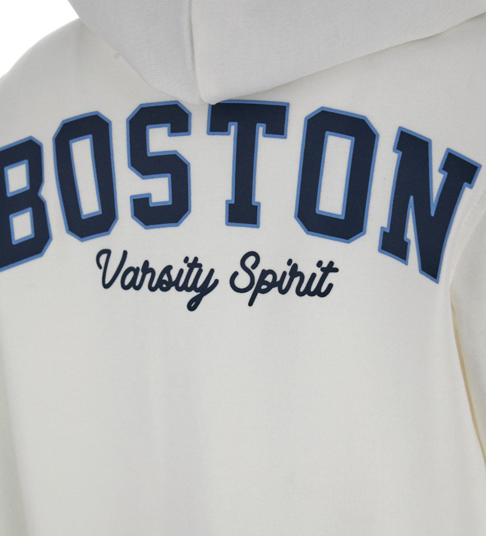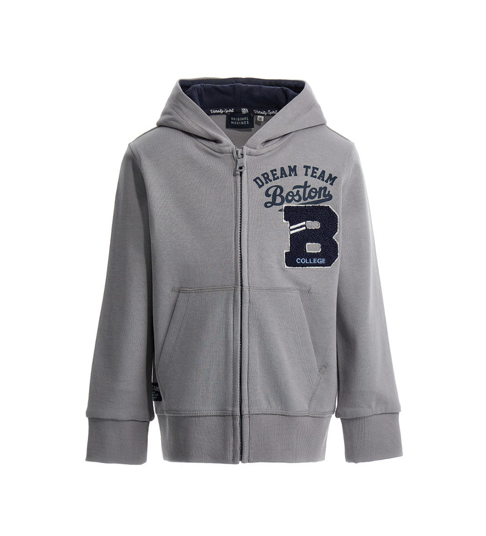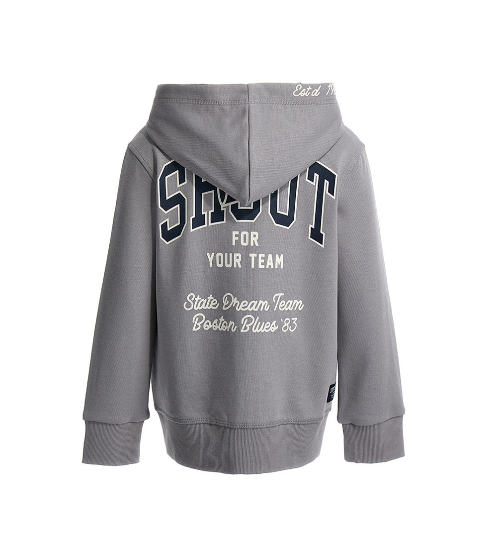 Long-sleeved cotton hoodie with contrasting cotton-lined hood, ribbed finishes, kangaroo pocket, prints, embroidery and side embroidered label.