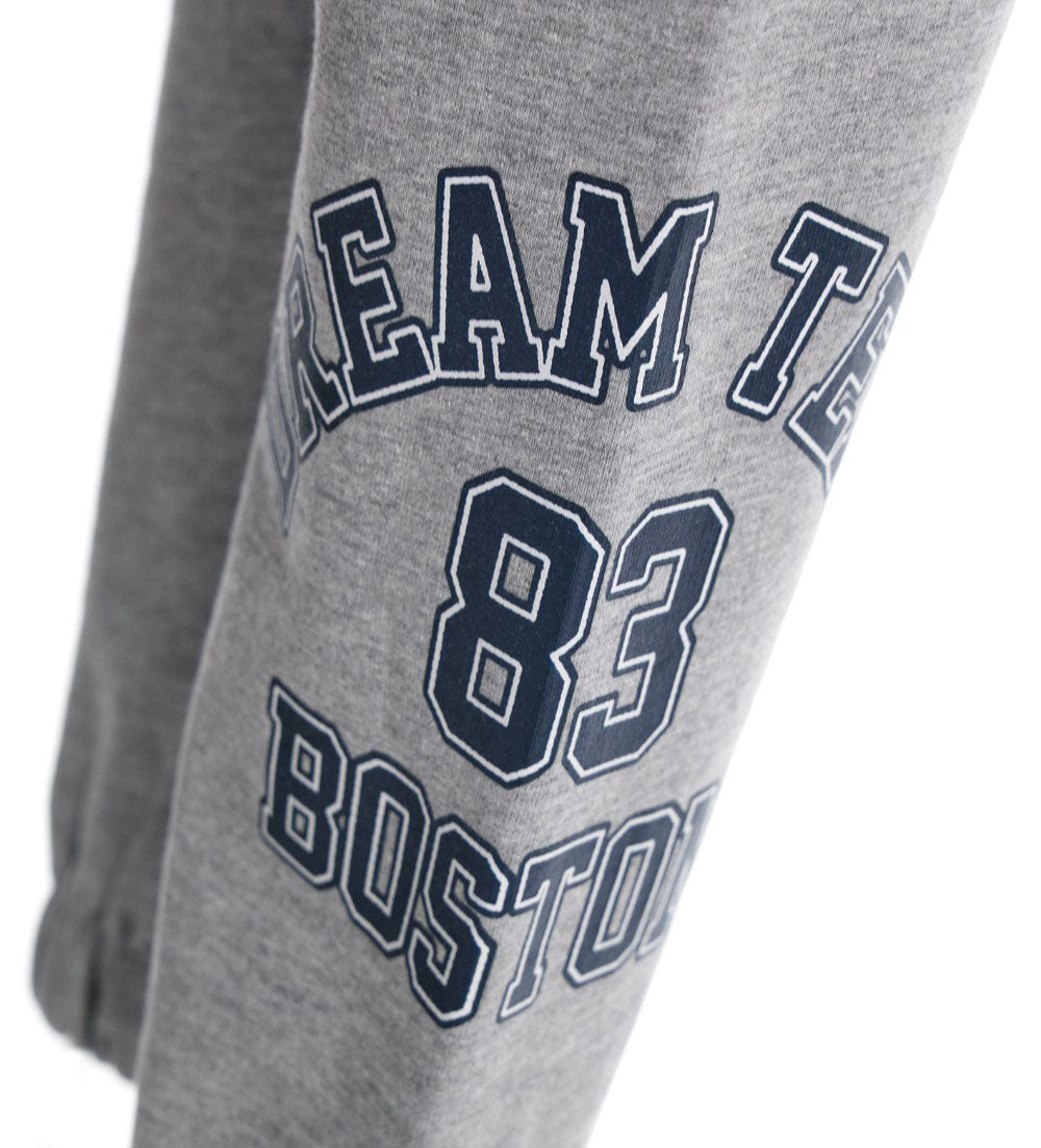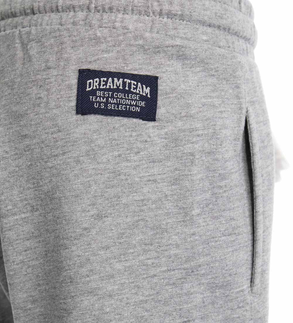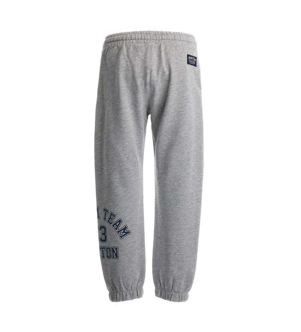 Fleeced cotton pants with hidden pockets in the seam line, contrasting adjustable lace, elastic on the bottom, side print and embroidered label.