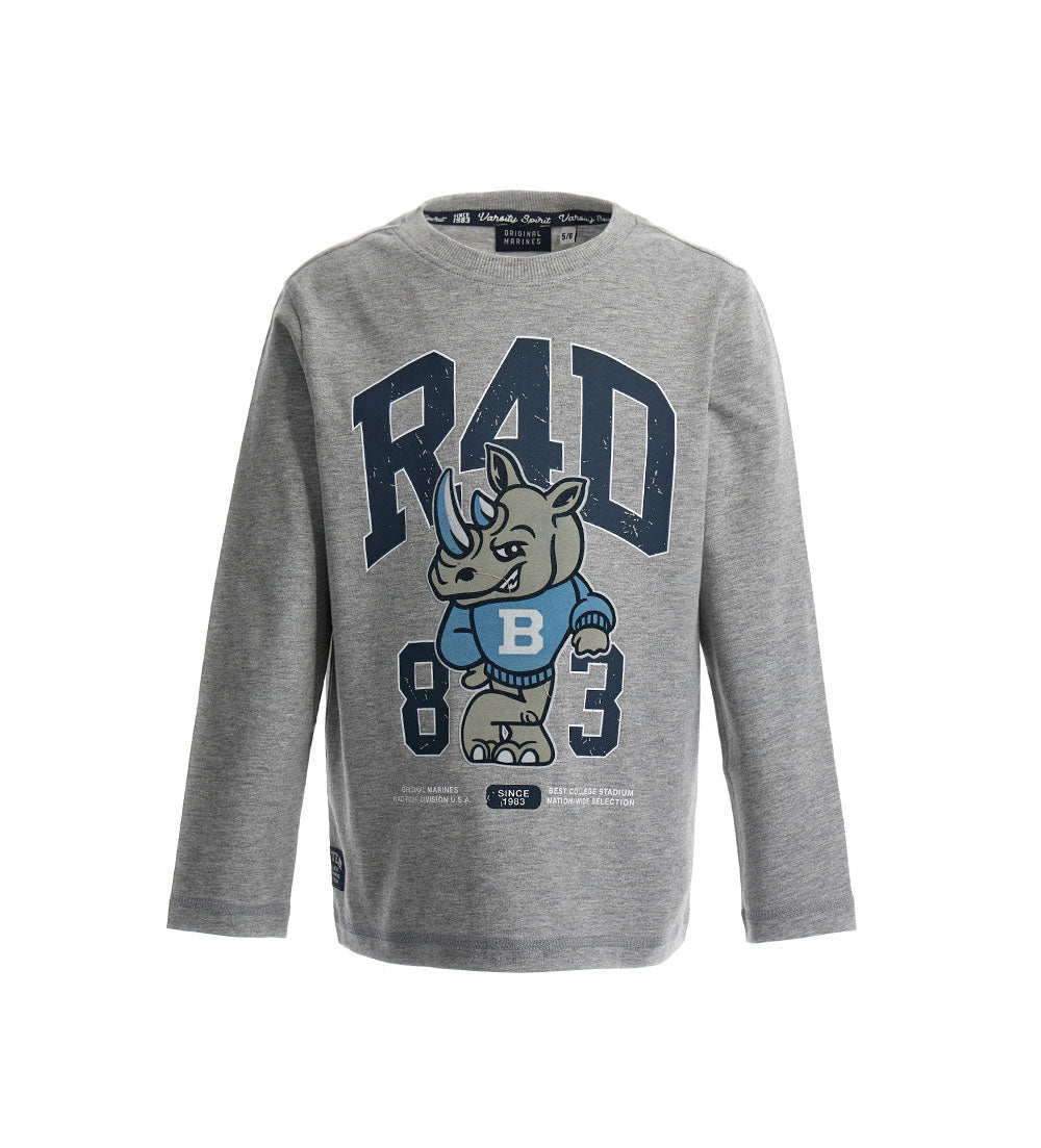 Long-sleeved cotton t-shirt with ribbed round neck, prints and side embroidered label.