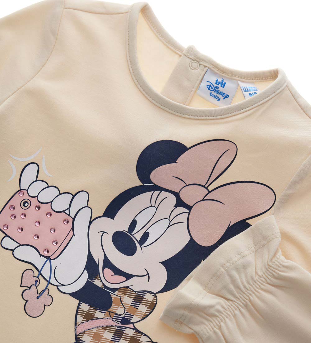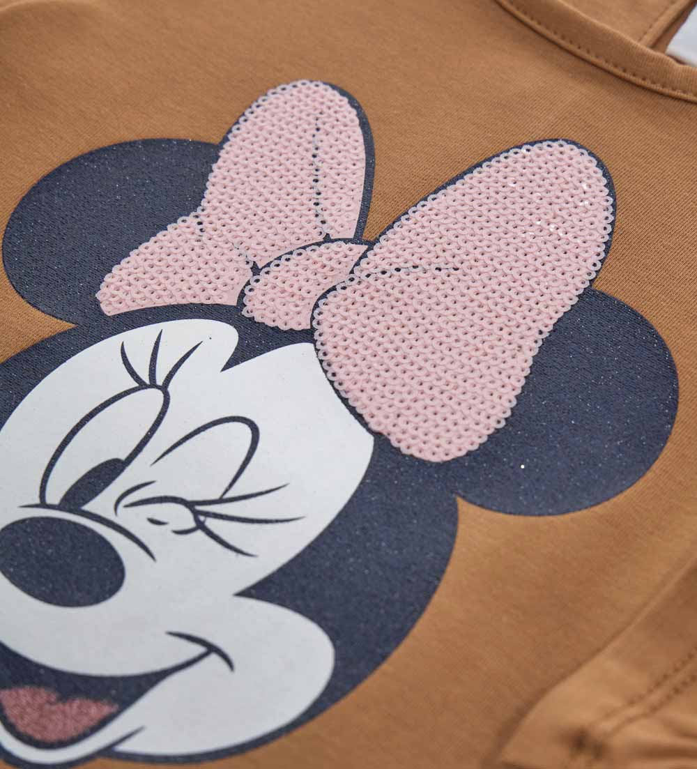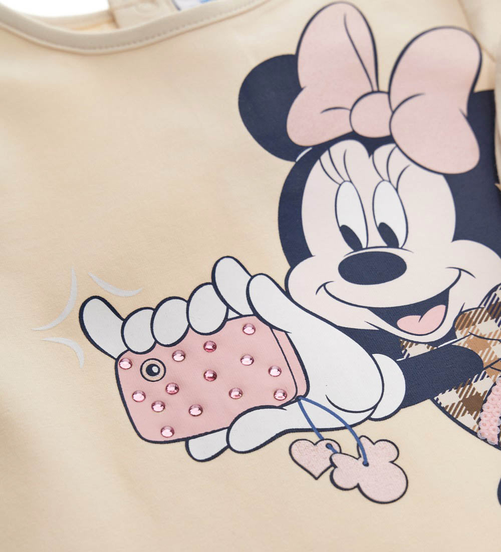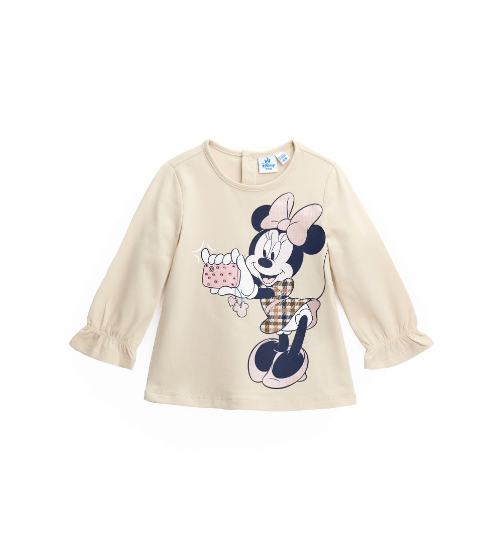 Disney long-sleeved crewneck t-shirt in stretch cotton with rear button opening, print with glitter and sequin details.