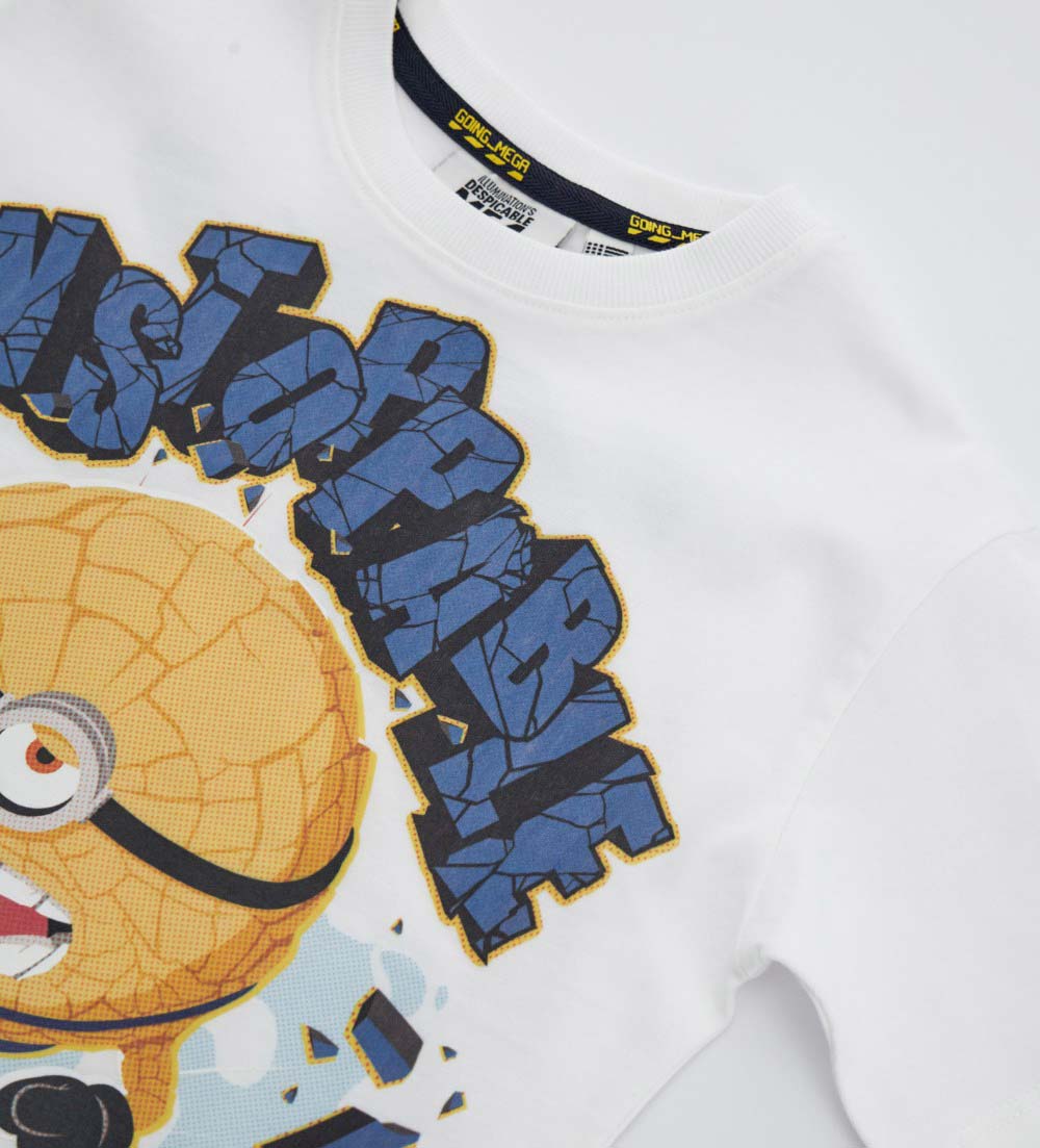 Minions oversized fit cuffed cotton t-shirt with ribbed round neck and prints.