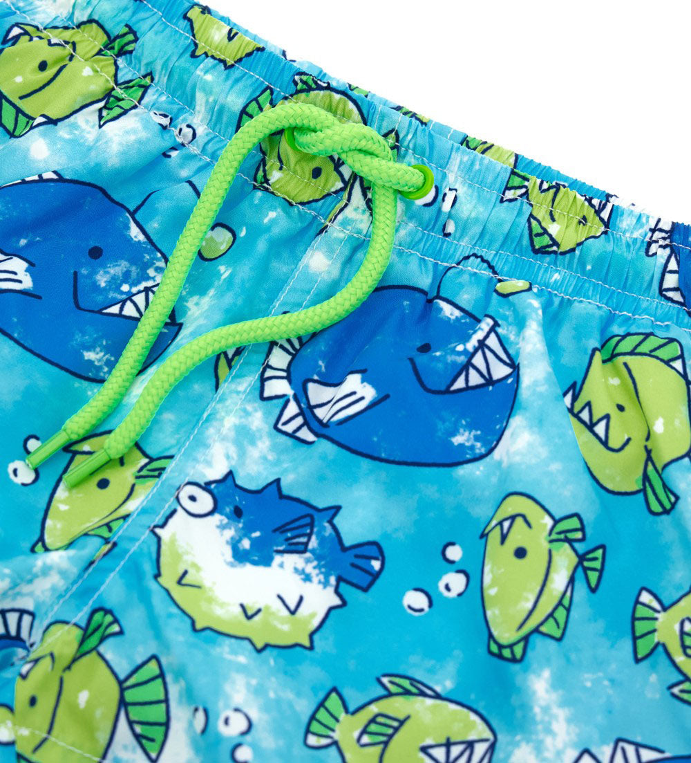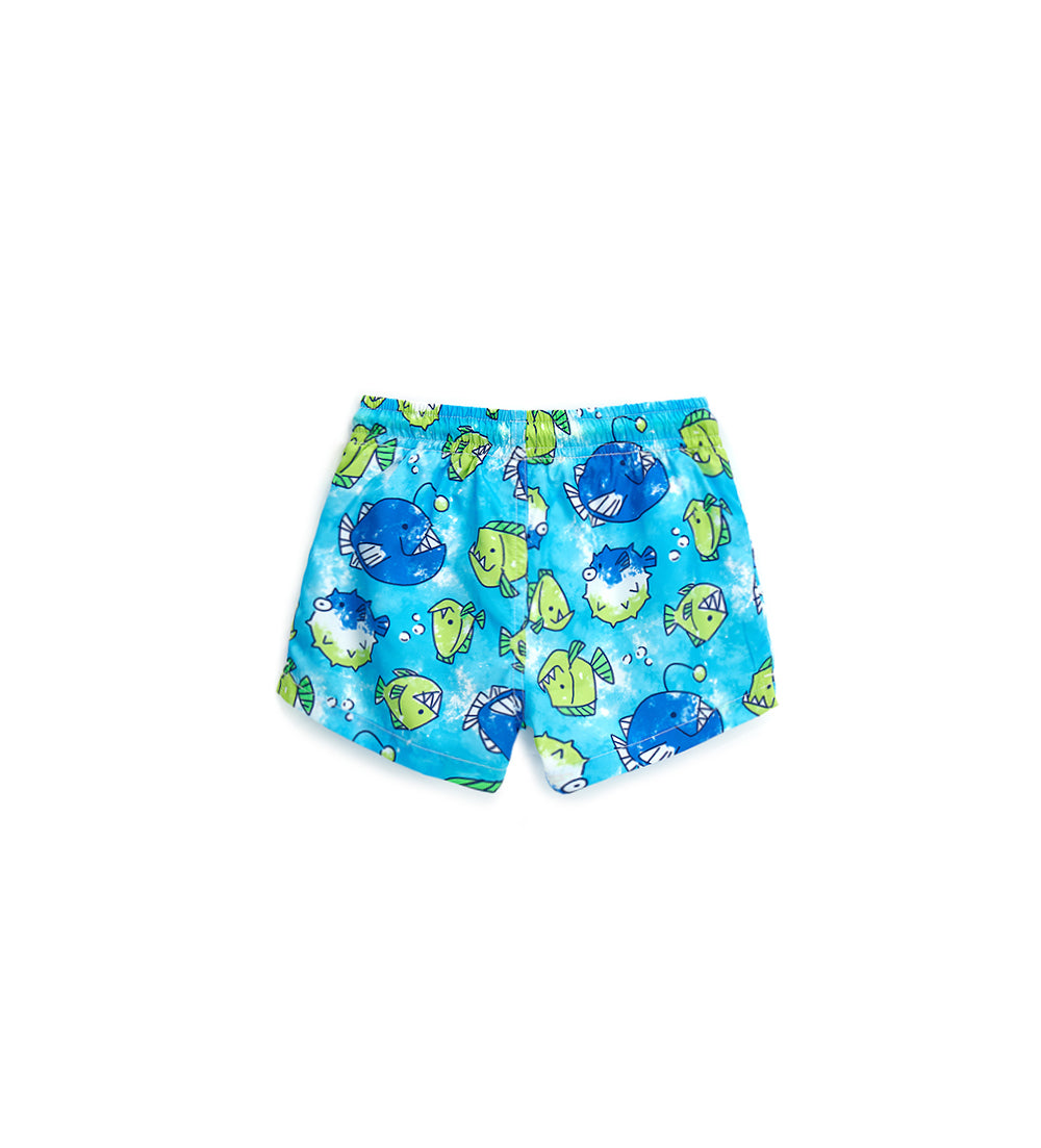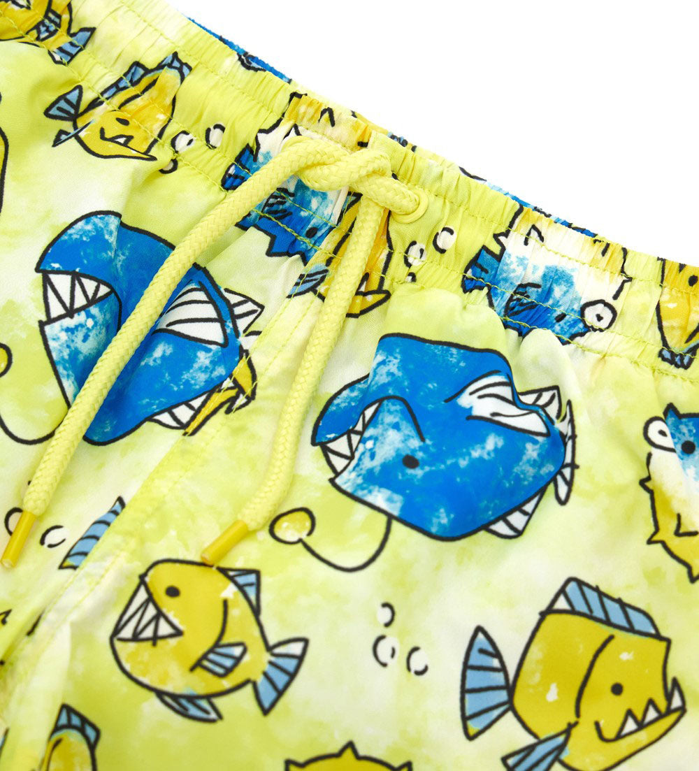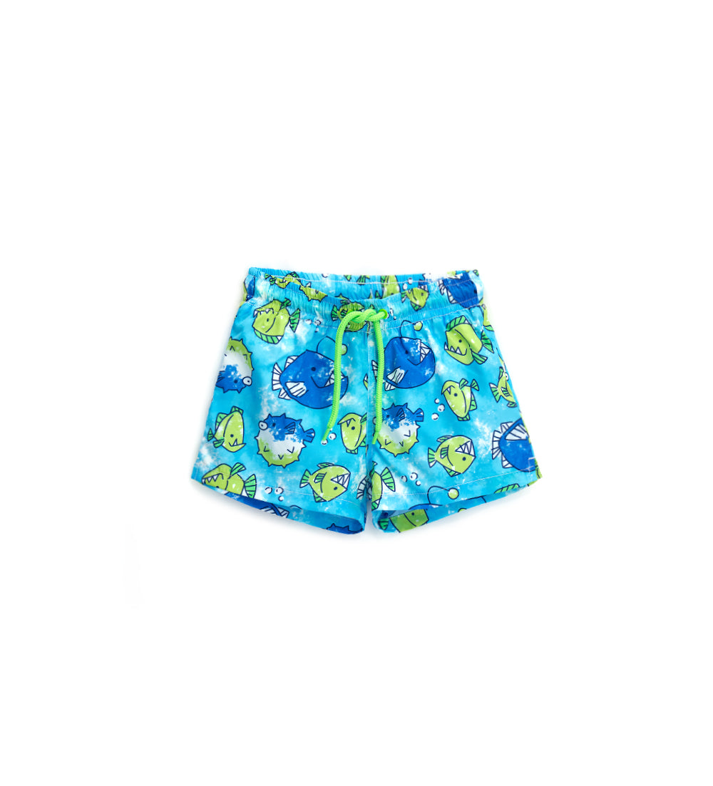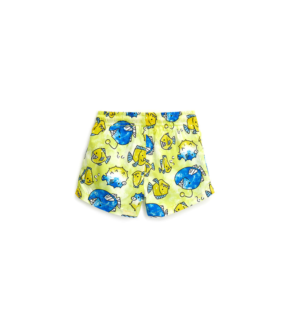 Swim shorts with internal mesh briefs with allover print and adjustable fake laces at the waist.