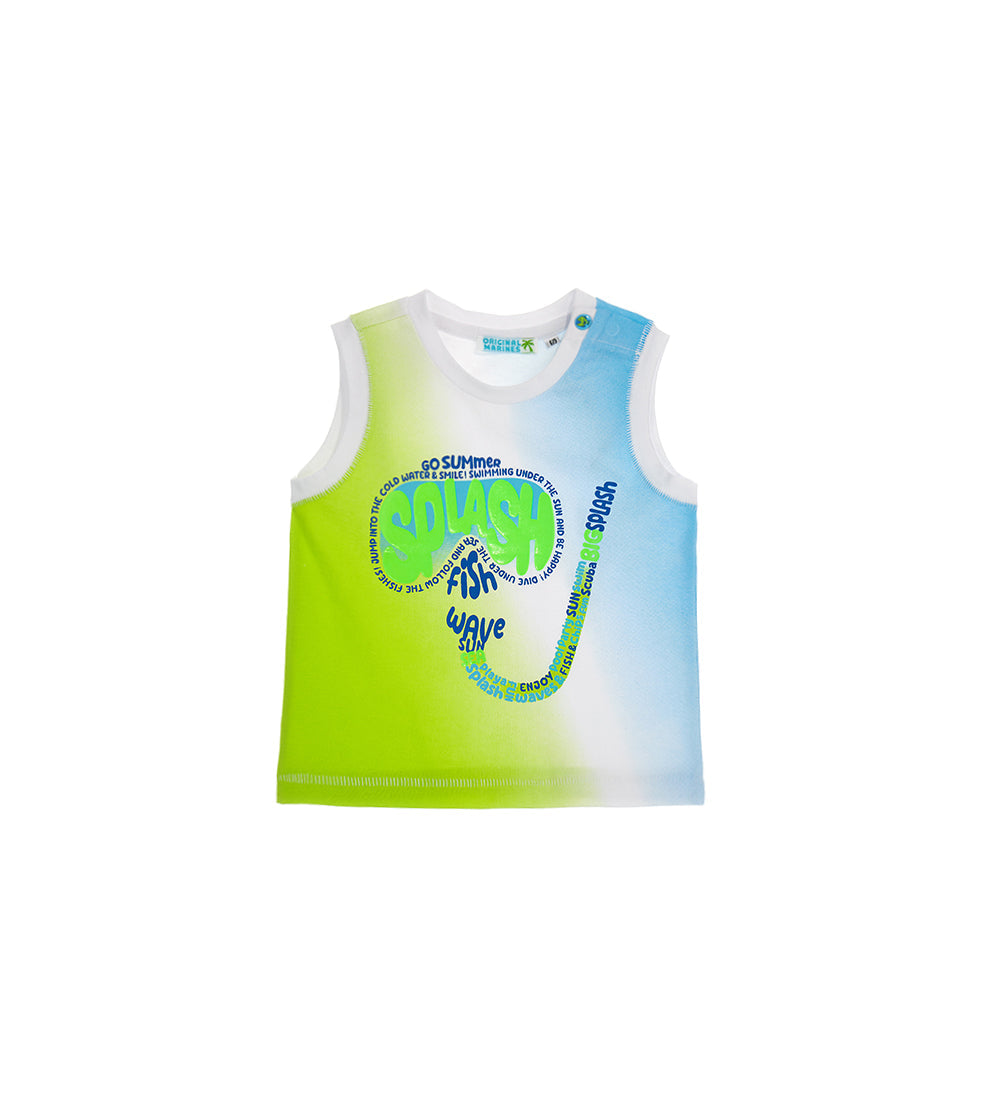 Cotton tank top with round neck, finishes in the same color and opening with snap buttons on the shoulder.