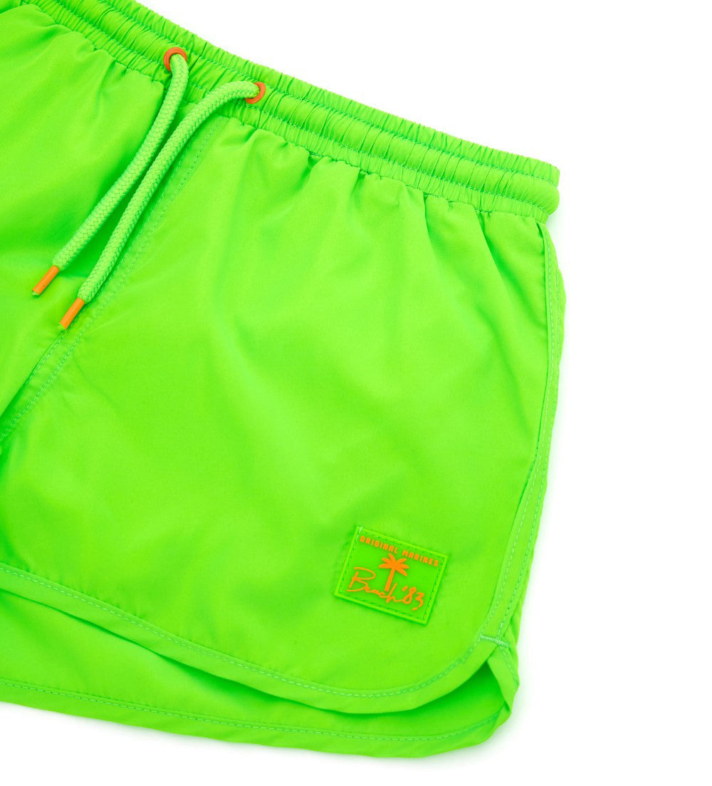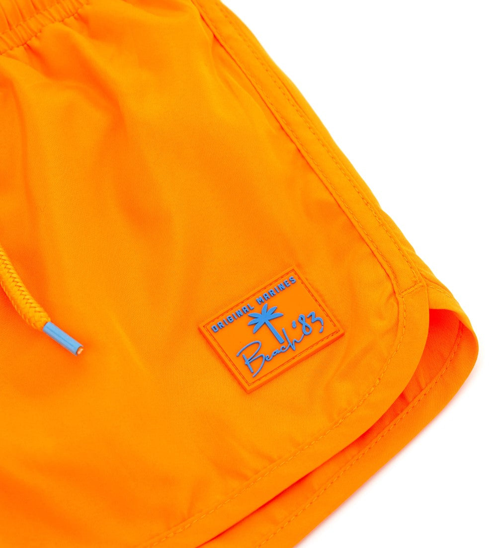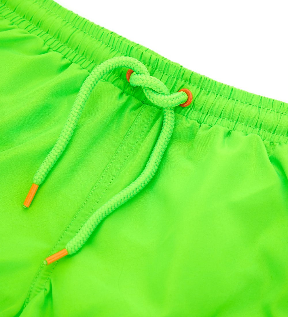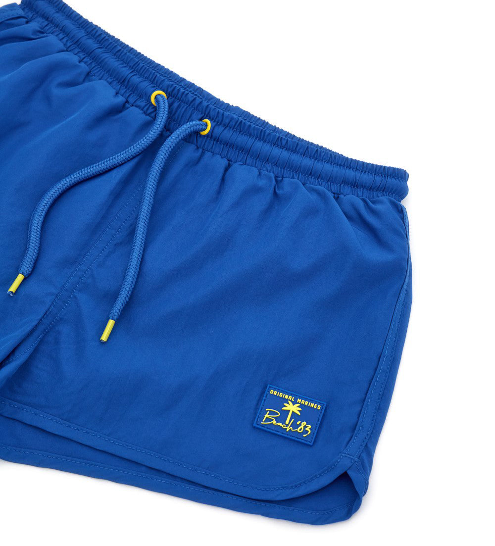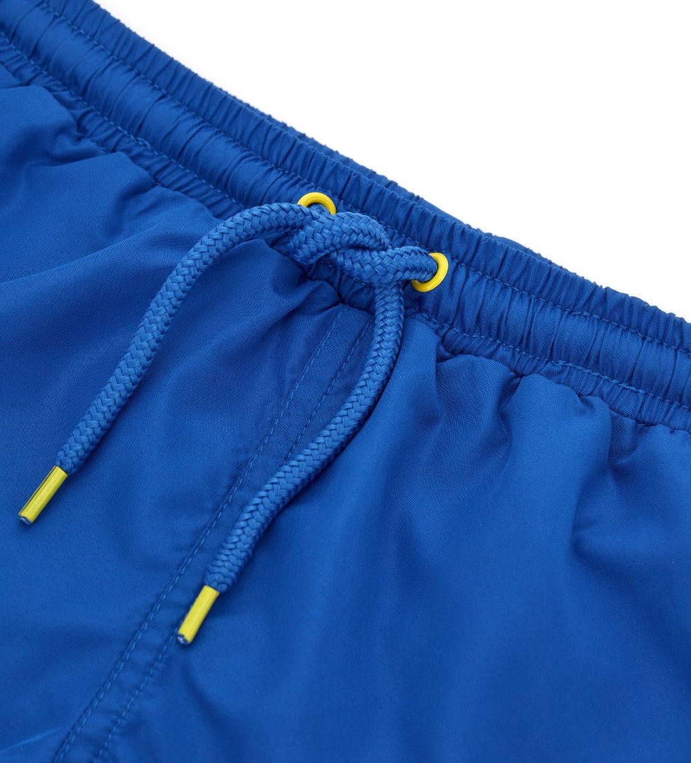 Swim shorts with internal mesh briefs, adjustable fake laces at the waist and patch pocket on the back.