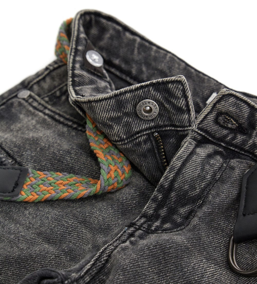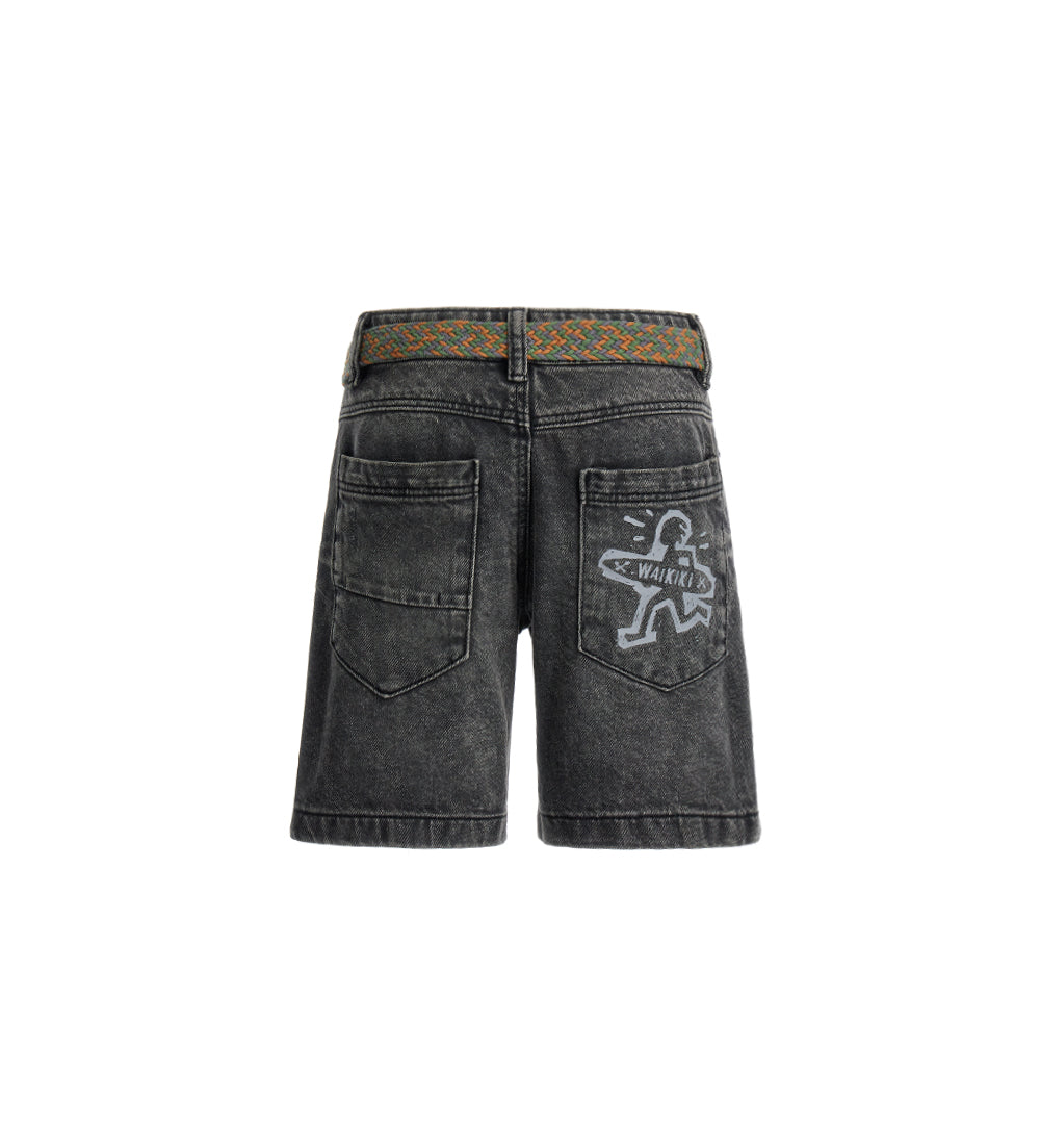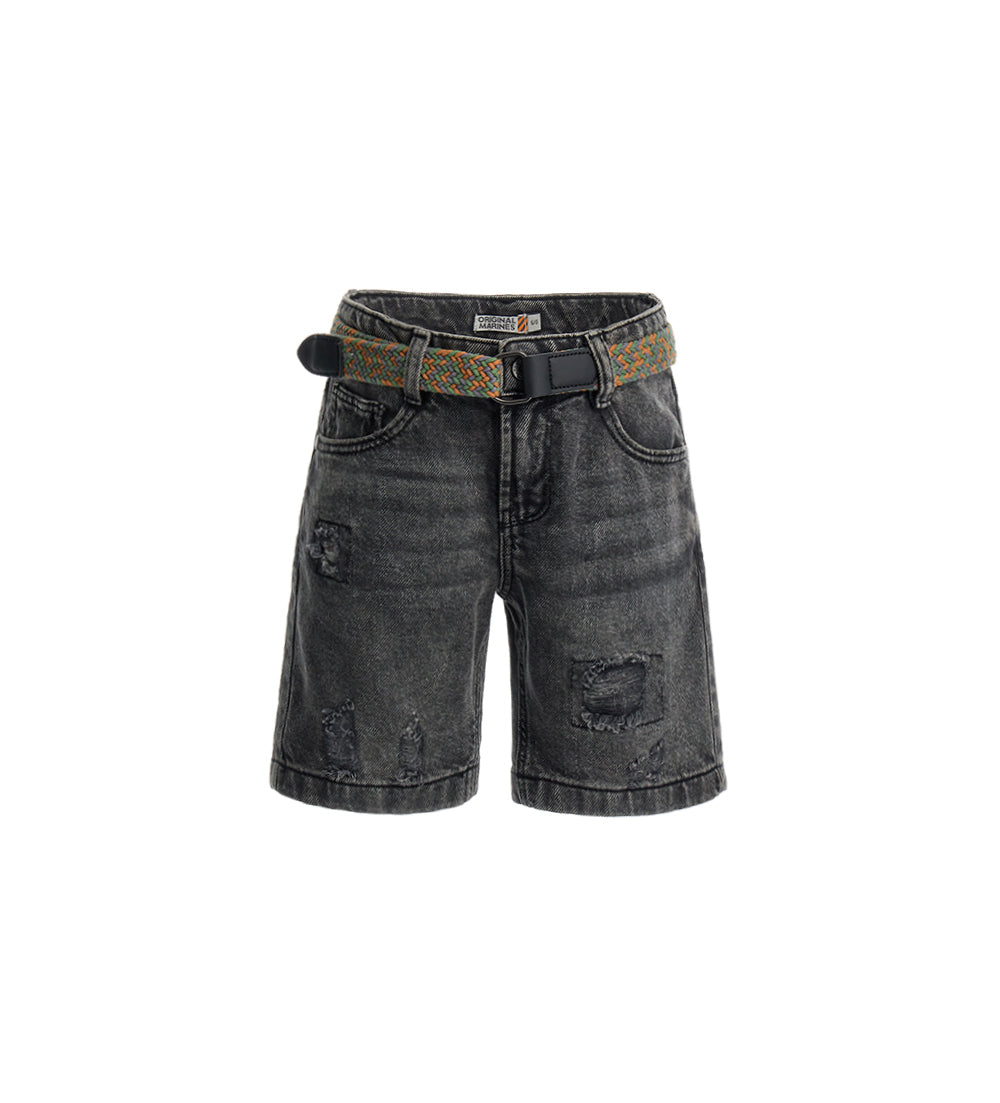 5-pocket Bermuda shorts in denim cotton with zip and button. Adjustable waist inside.