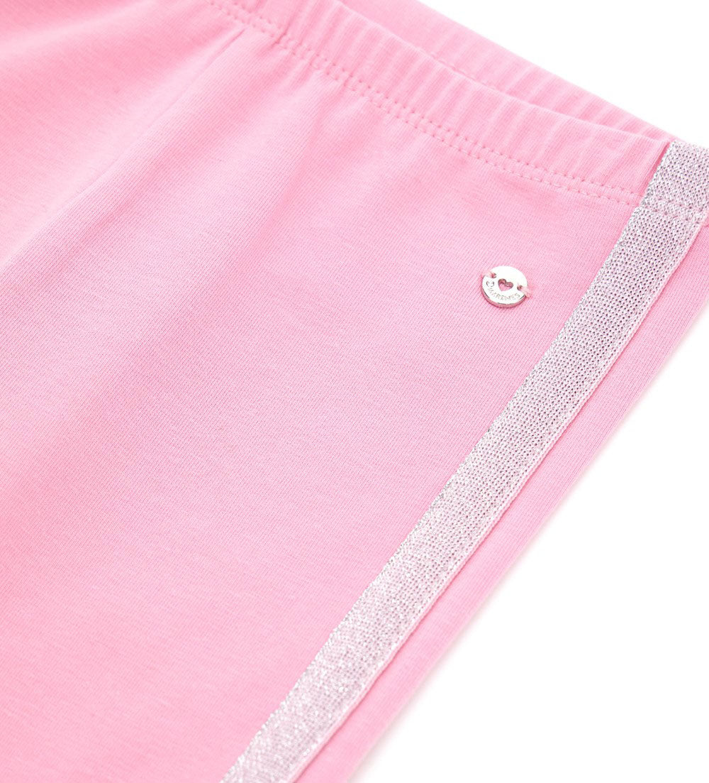Stretch cotton leggings with decorative polyester side band and front logo medal.