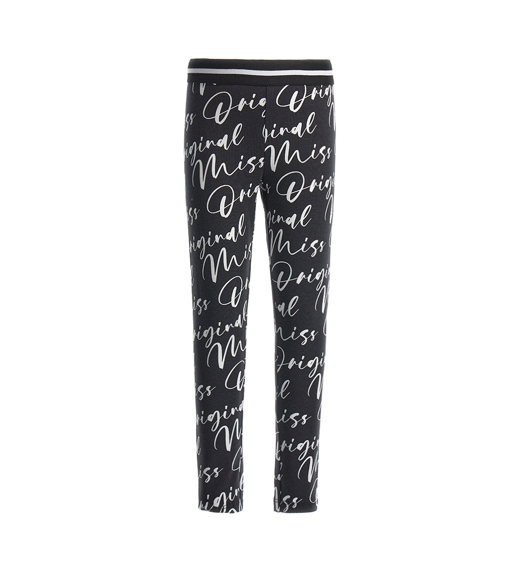 Stretch cotton fleece leggings with elastic waist and printed applications.