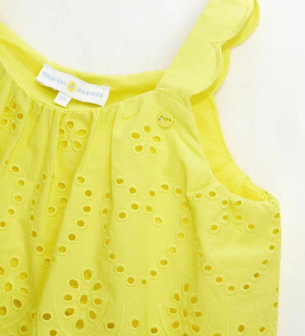 Cotton top with round neckline, straps with embroidered hem and decorative embroidery on the front and back.