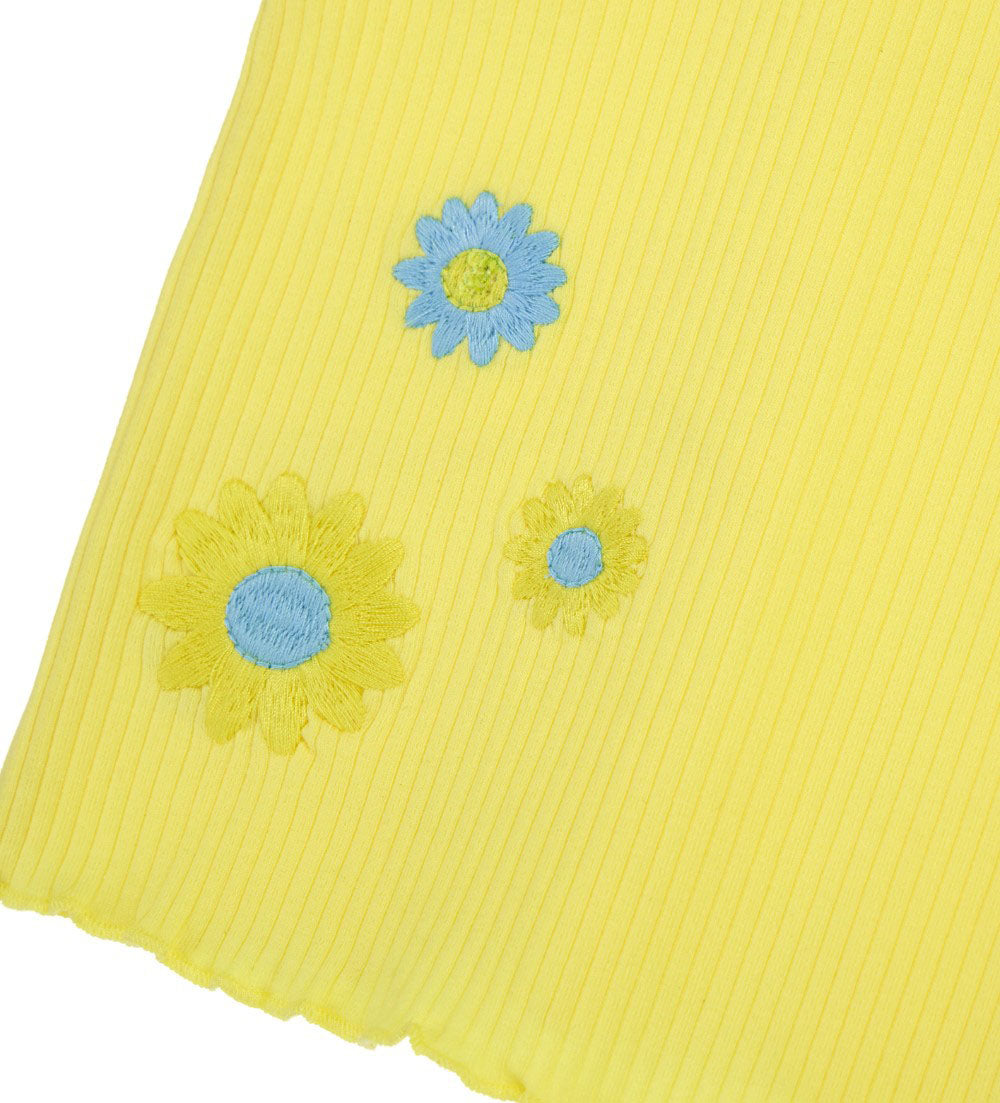 Ribbed top with sleeveless round neck and embroidered flowers on the front.