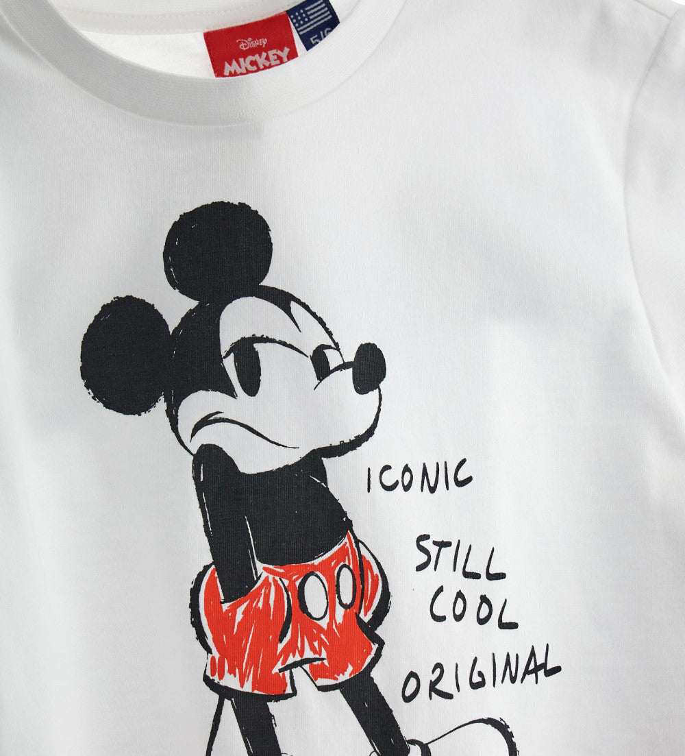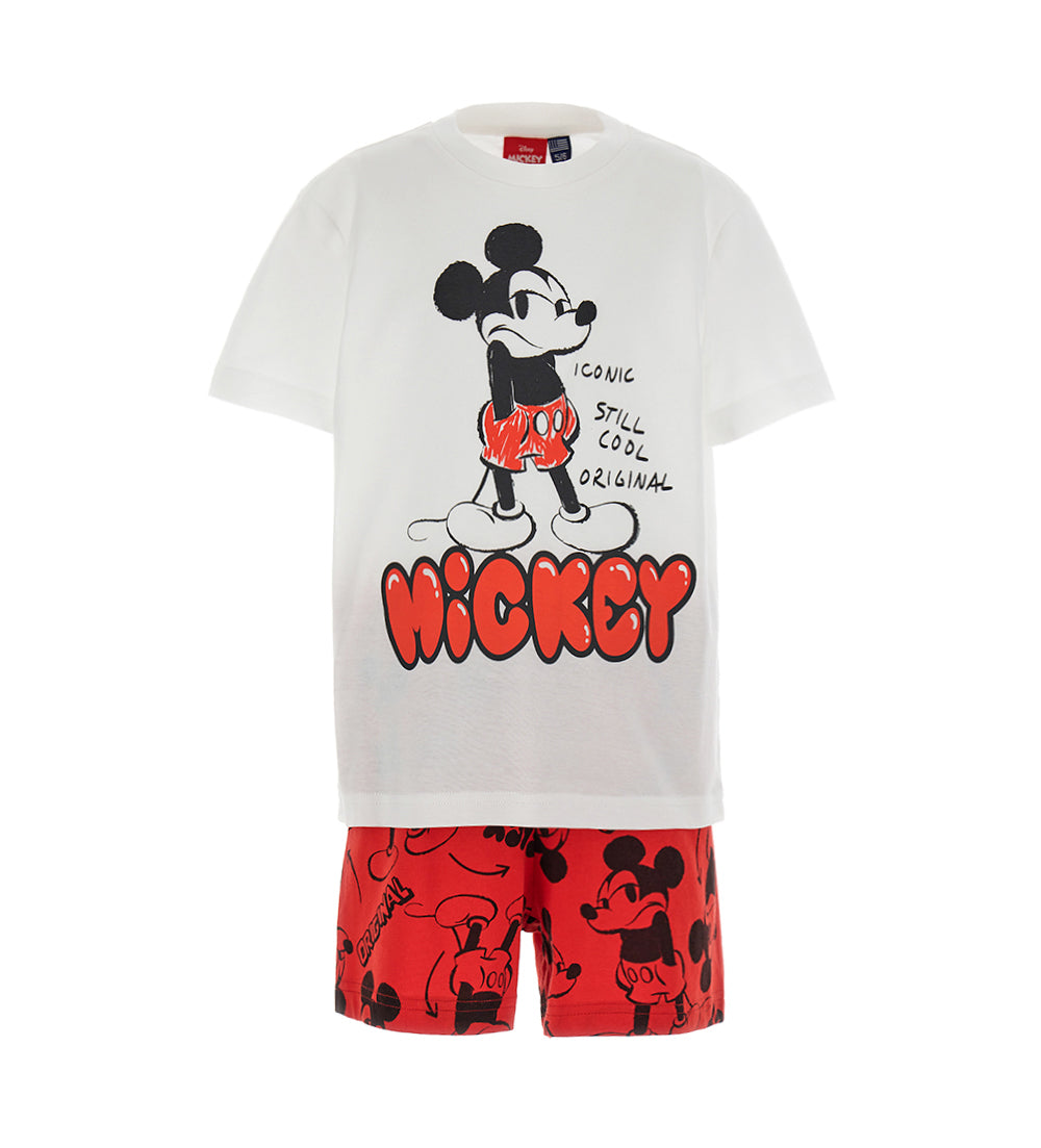Disney Mickey pajamas in cotton: T-shirt with round neck, short sleeves, front print and back print with luminor effect. Short trousers with allover print.