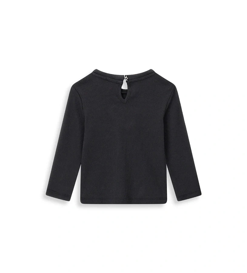 Long-sleeved stretch rib T-shirt with round neck, keyhole opening, patches and sequins.