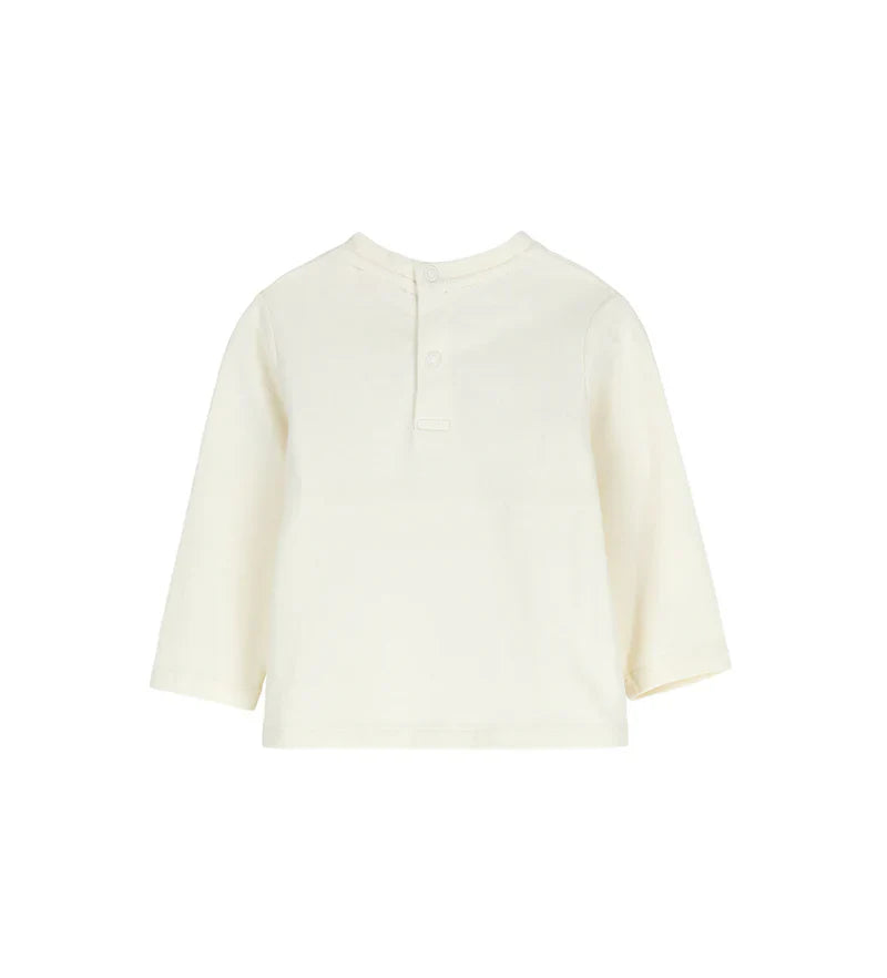 Stretch cotton T-shirt with round neck, long sleeves, print with metallic details and button opening.