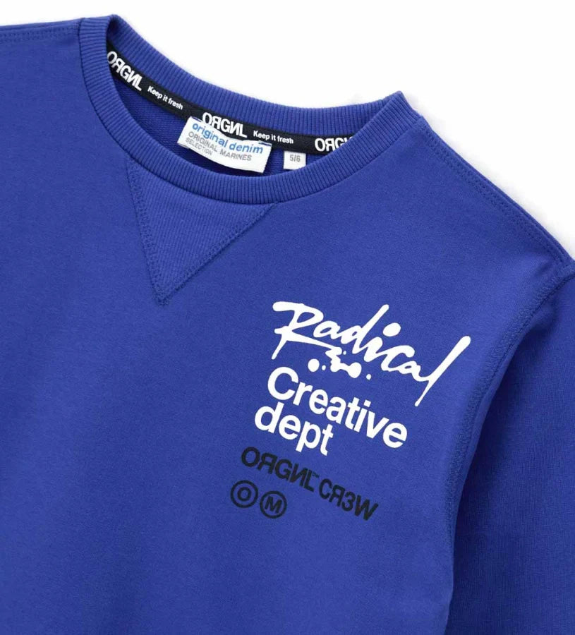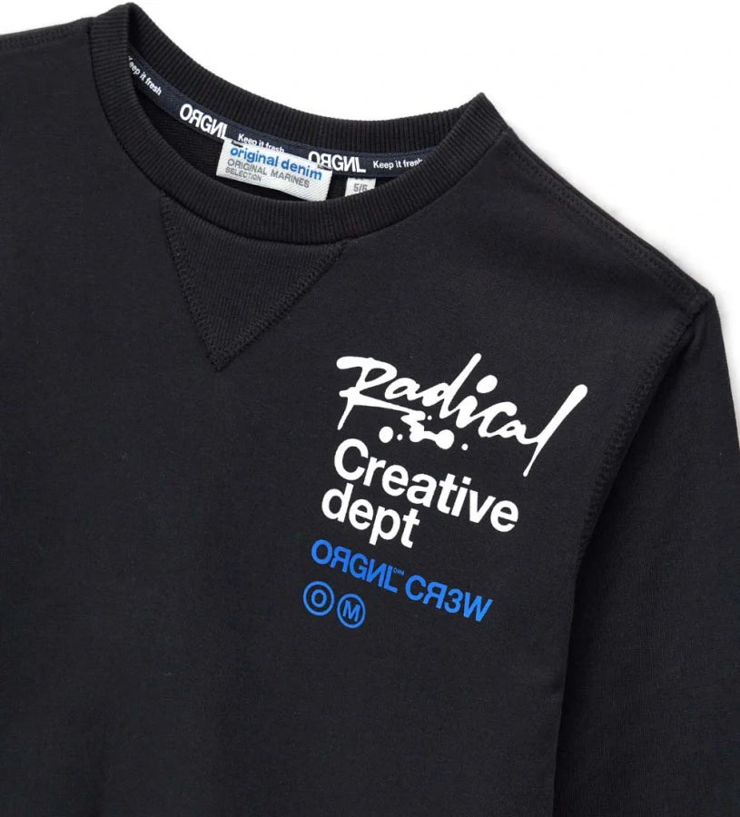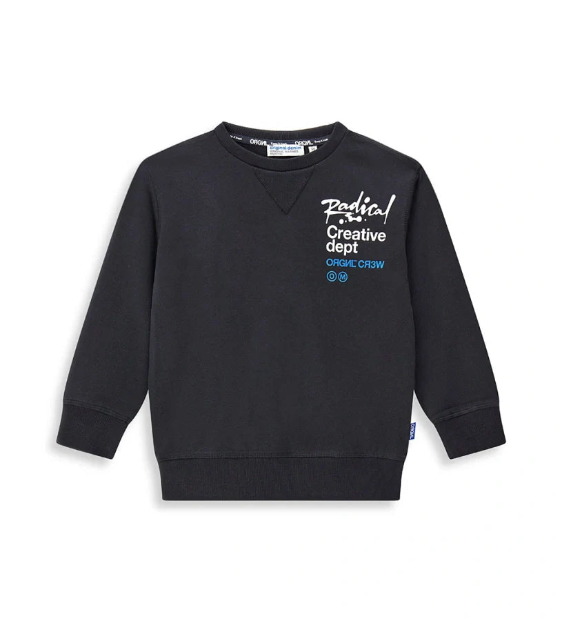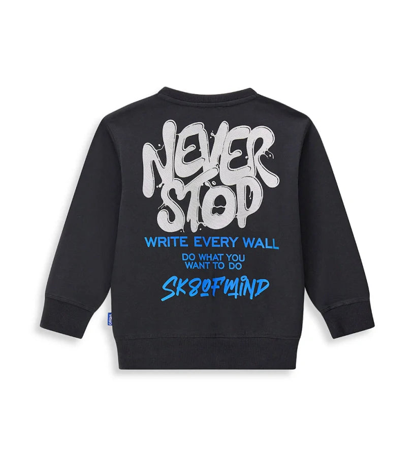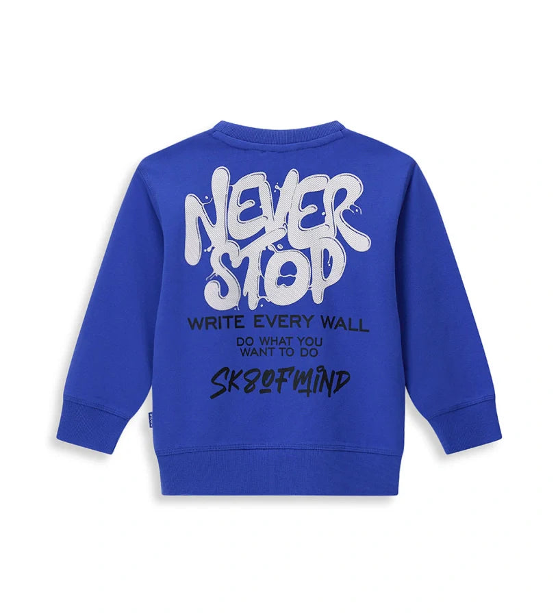 Long-sleeved cotton sweatshirt with ribbed trims and decorated with prints on the front and back.