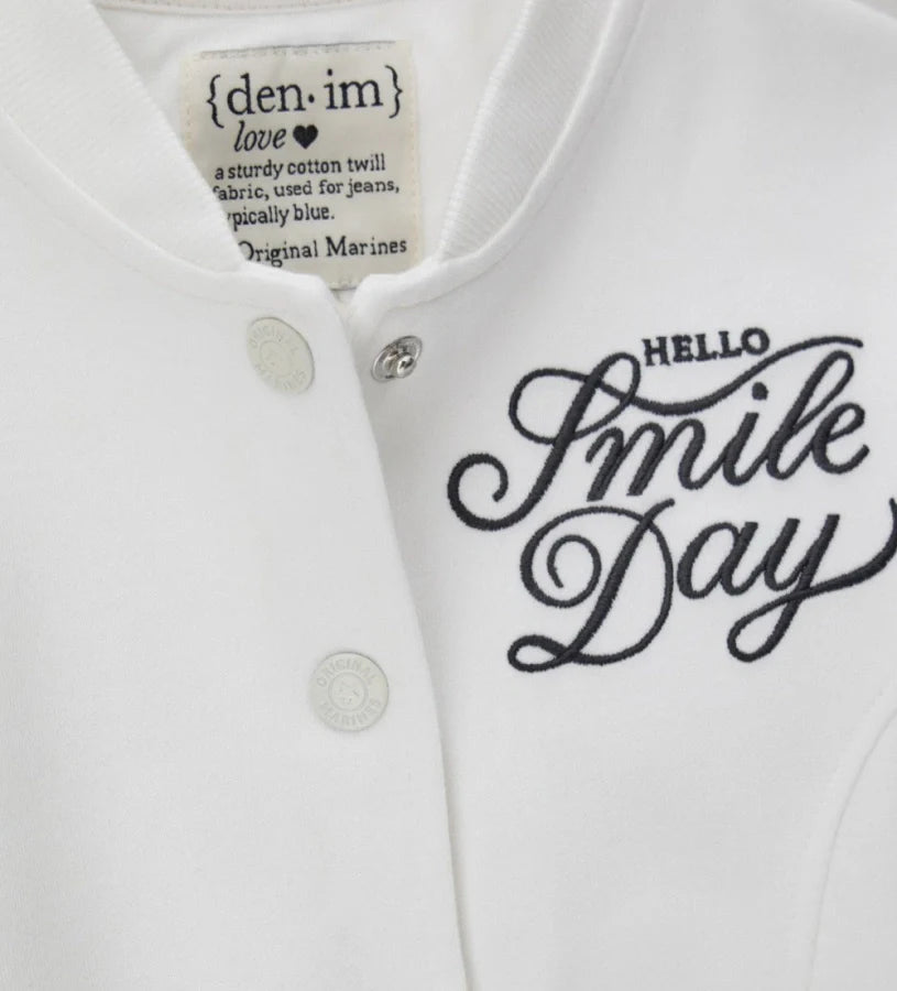 Stretch cotton sweatshirt with round neck, long sleeves, ribbed trims, pockets and button opening.
