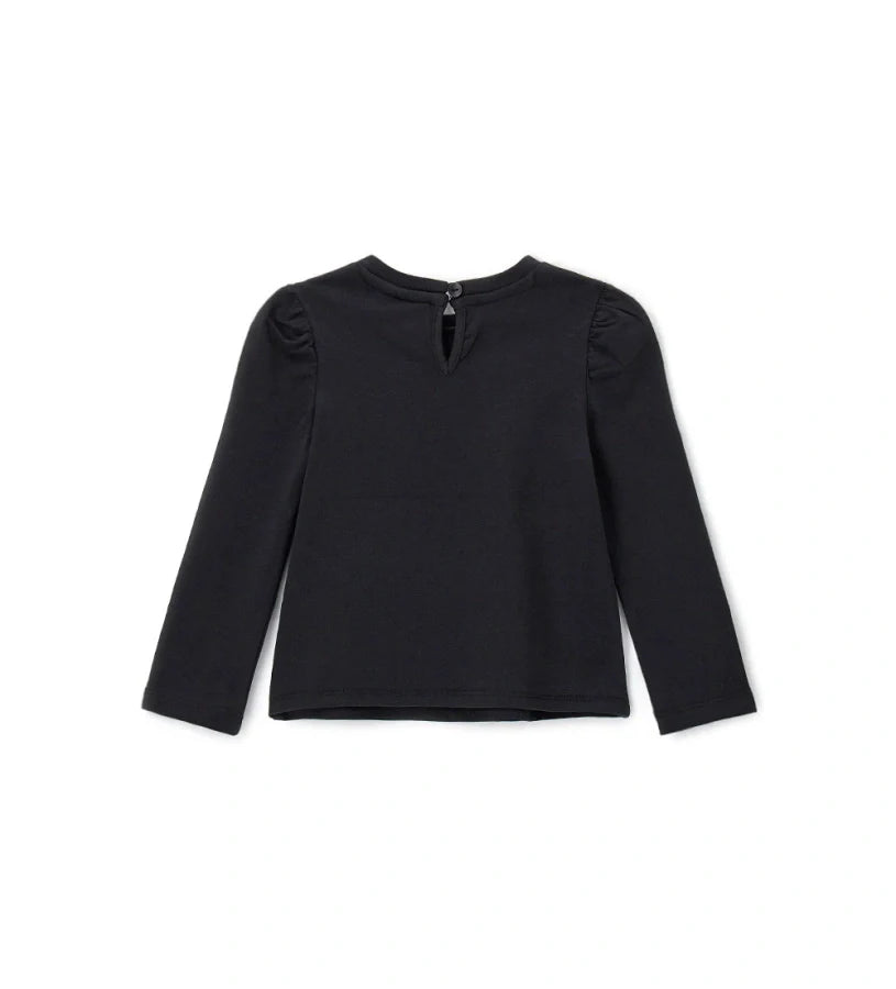 Disney Minnie Mouse black stretch cotton long-sleeved T-shirt with ruffles, print and glitter.